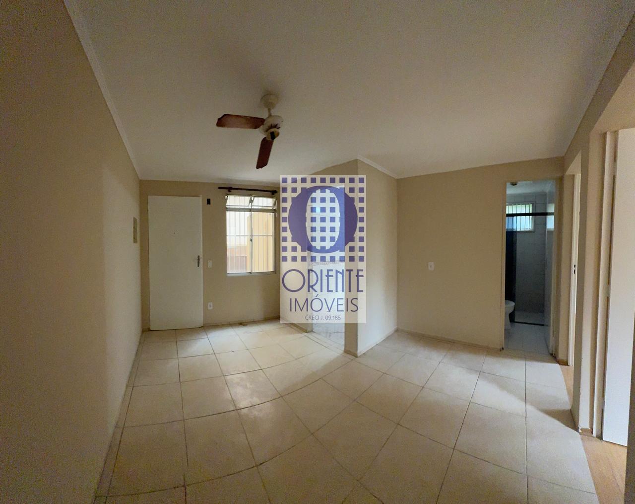 APARTAMENTO com 02 dormitórios, sala, cozinha, área de serviço, banheiro, 01 vaga de garagem, condomínio com área de lazer completa, mercadinho, segurança e portaria 24 horas.