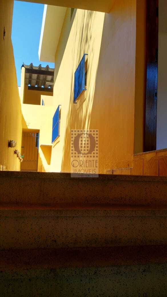 SOBRADO com 02 dormitórios, sacada, sala, cozinha, despensa, lavanderia com área de churrasqueira, 02 vagas de garagem e mais 01 dormitório com banheiro nos fundos.
